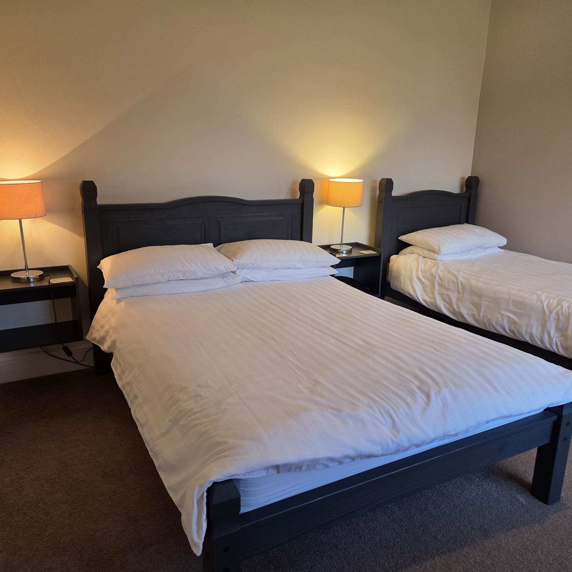 Upstairs, the rooms Moulton &Apsley, both have one double bed, one single bed and an additional fold down single bed can be added.These rooms have ensuite shower rooms.